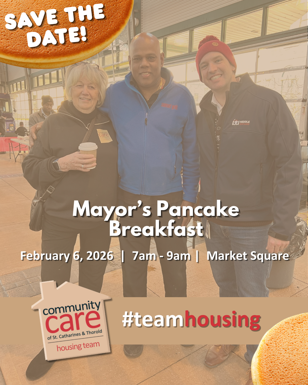 Join the Housing Help team at Community Care of St. Catharines and Thorold and support homelessness prevention initiatives in our community. Enjoy a delicious fresh-cooked pancake breakfast, thanks to Joney at Sunset Grill, select your favourite toque, all while making housing more accessible through local services.