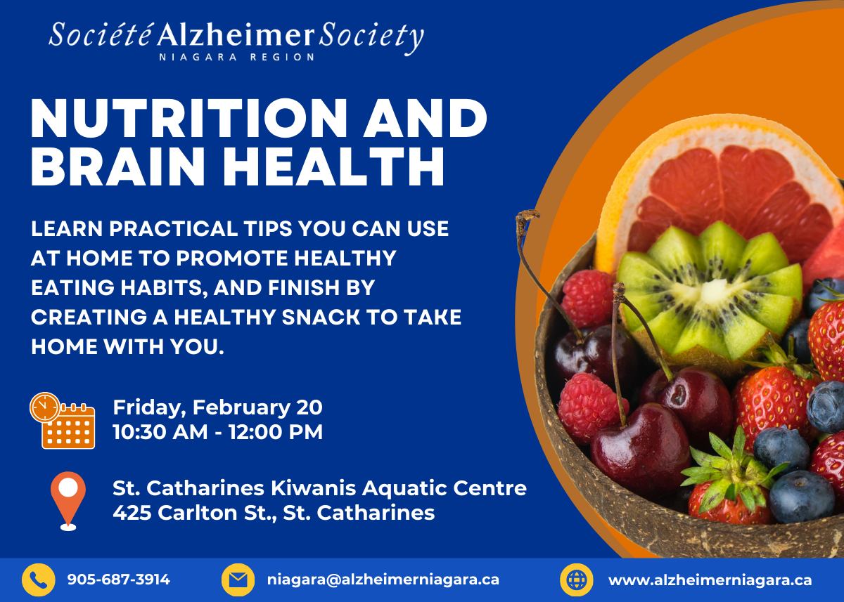 In our discussion, Registered Dietitian Christina will talk about nutrition, the MIND diet, and nutrients of importance for the brain. We will discuss practical tips you can use at home to promote healthy eating habits, and finish by creating a healthy snack to take home with you.