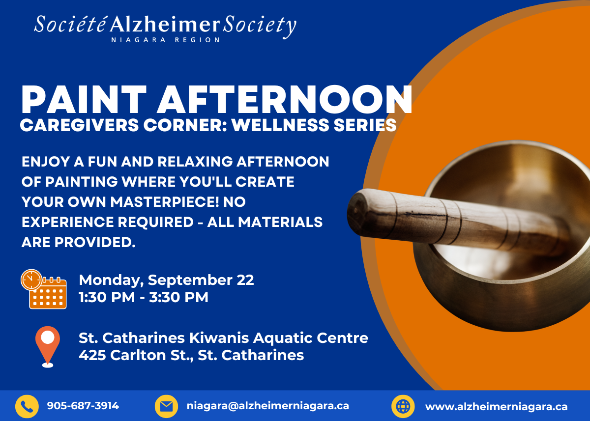 Register by calling our office at 905-687-3914 or visit us online at www.alzheimerniagara.ca/caregiverwellness